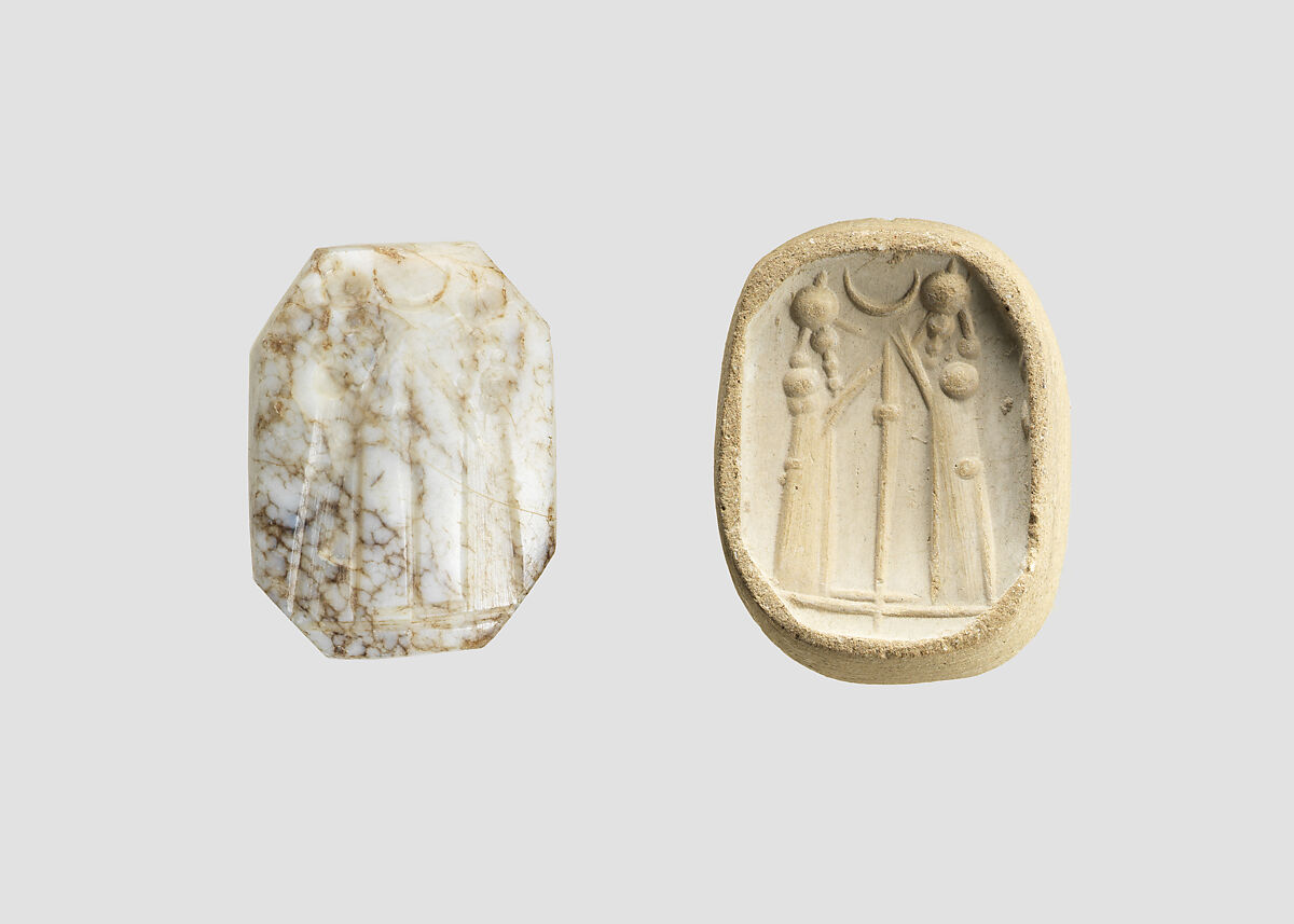 - Title: Stamp seal (octagonal pyramid) with cultic scene