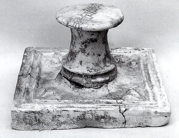 The exact function of these plaques remains uncertain. It is likely that they are an iteration of an earlier tradition in Mesopotamia and Iran, dating to the third millennium B.C., of dedicating votive plaques, which were literally affixed to temple walls with wooden pegs. In these later versions, however, the peg has become an integral part of the plaque itself. It is possible that the pegs were used to suspend some kind of attachment, such as a tapestry or other wall hanging.