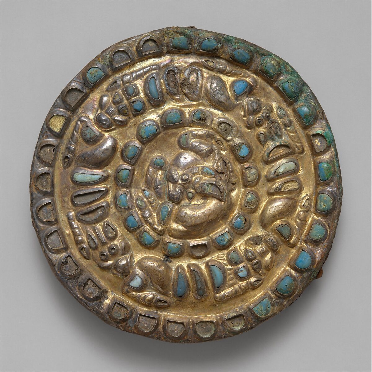 - Title: Roundel with a horned animal, lions, and griffins