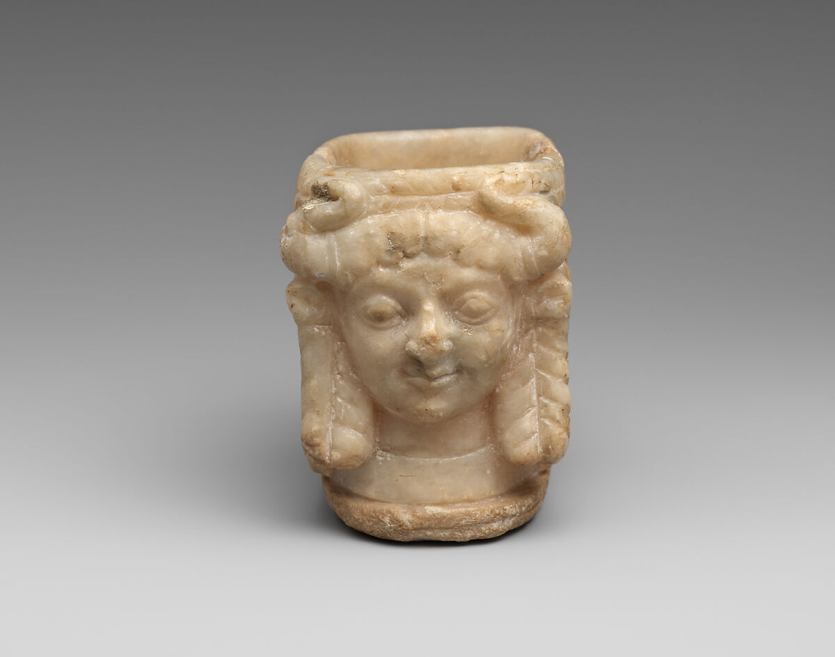 - Title: Vessel with heads of horned female deities