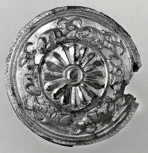 - Title: Roundel with a rosette and recumbent horned animals