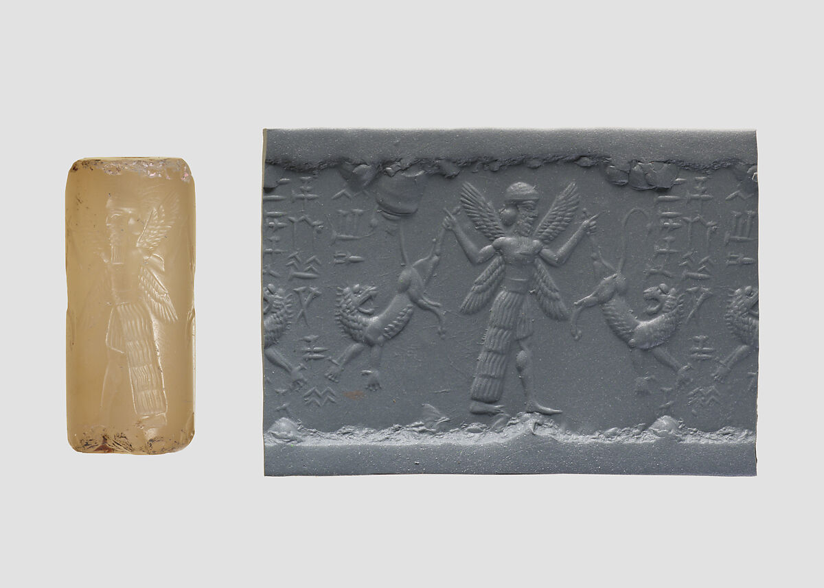 - Title: Cylinder seal with three-figure contest scene