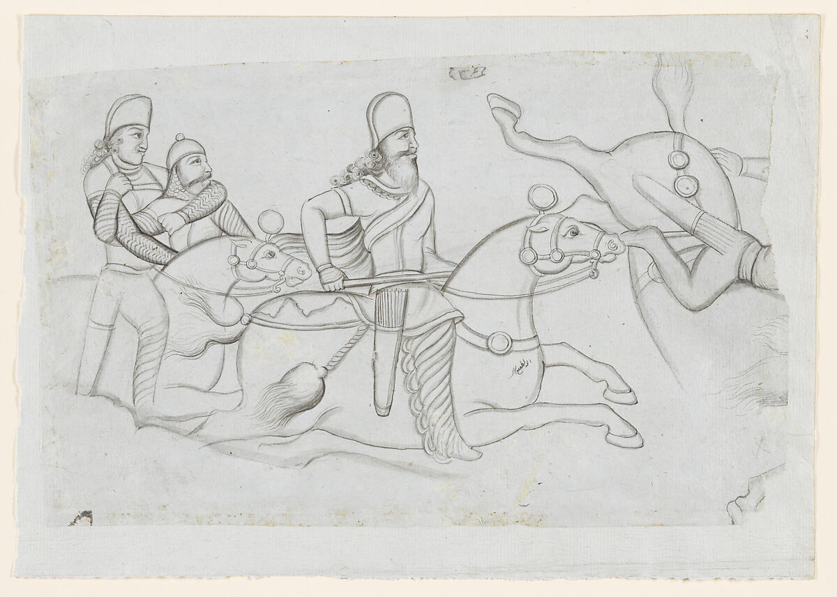 - Title: Drawing of Sasanian rock relief: battle of Ardashir I (r. A.D. 224-241) at Firuzabad, southern Iran