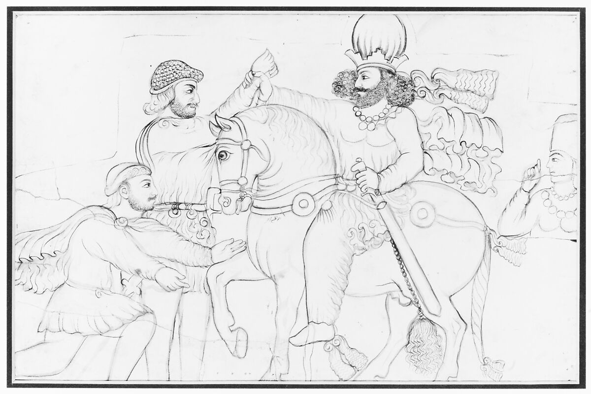 - Title: Drawing of Sasanian rock relief: Shapur I (r. A.D. 241-272) and Roman emperor Valerian at Naqsh-i Rustam, southern Iran