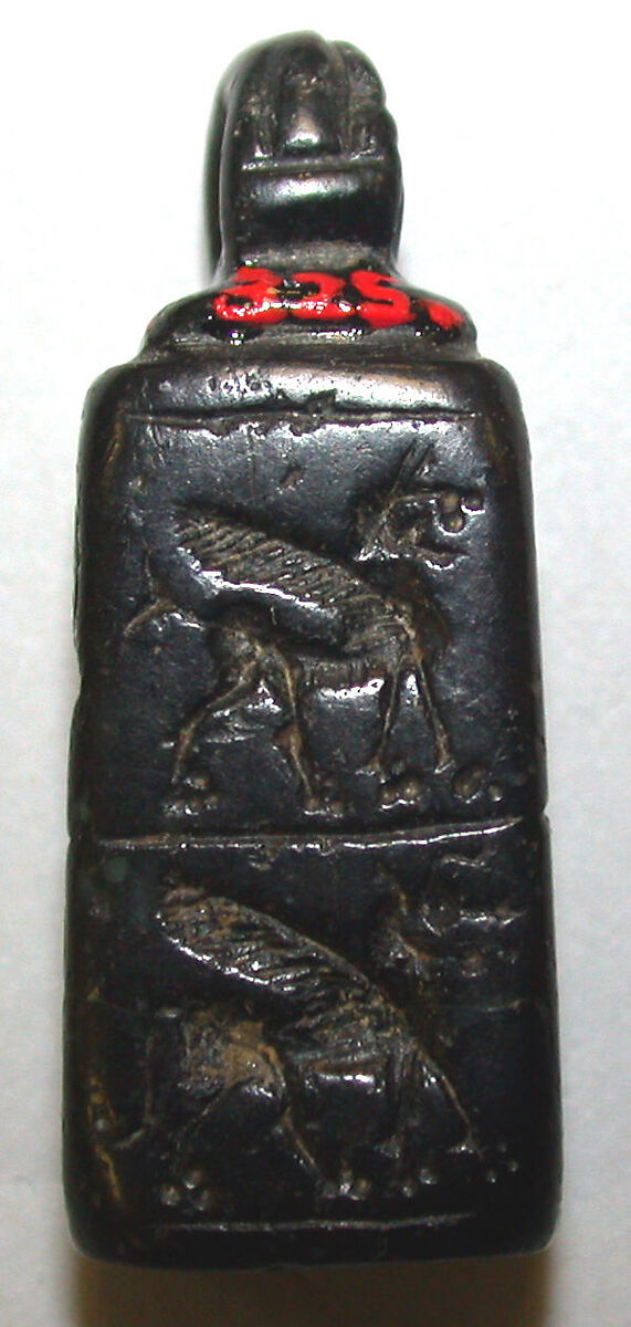 - Title: Stamp seal (cubical with loop handle) with monsters and anthropomorphic figure