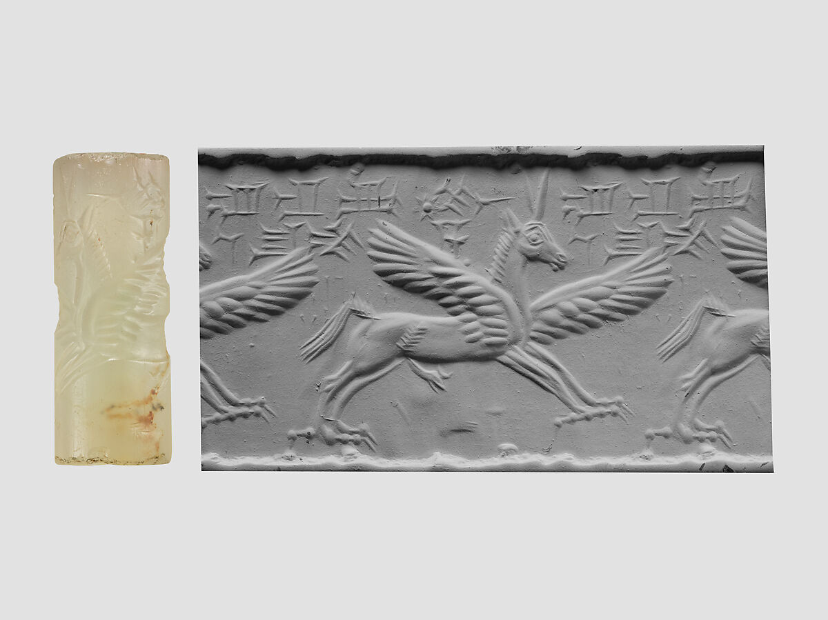 - Title: Cylinder seal and modern impression: winged horse with claws and horns
