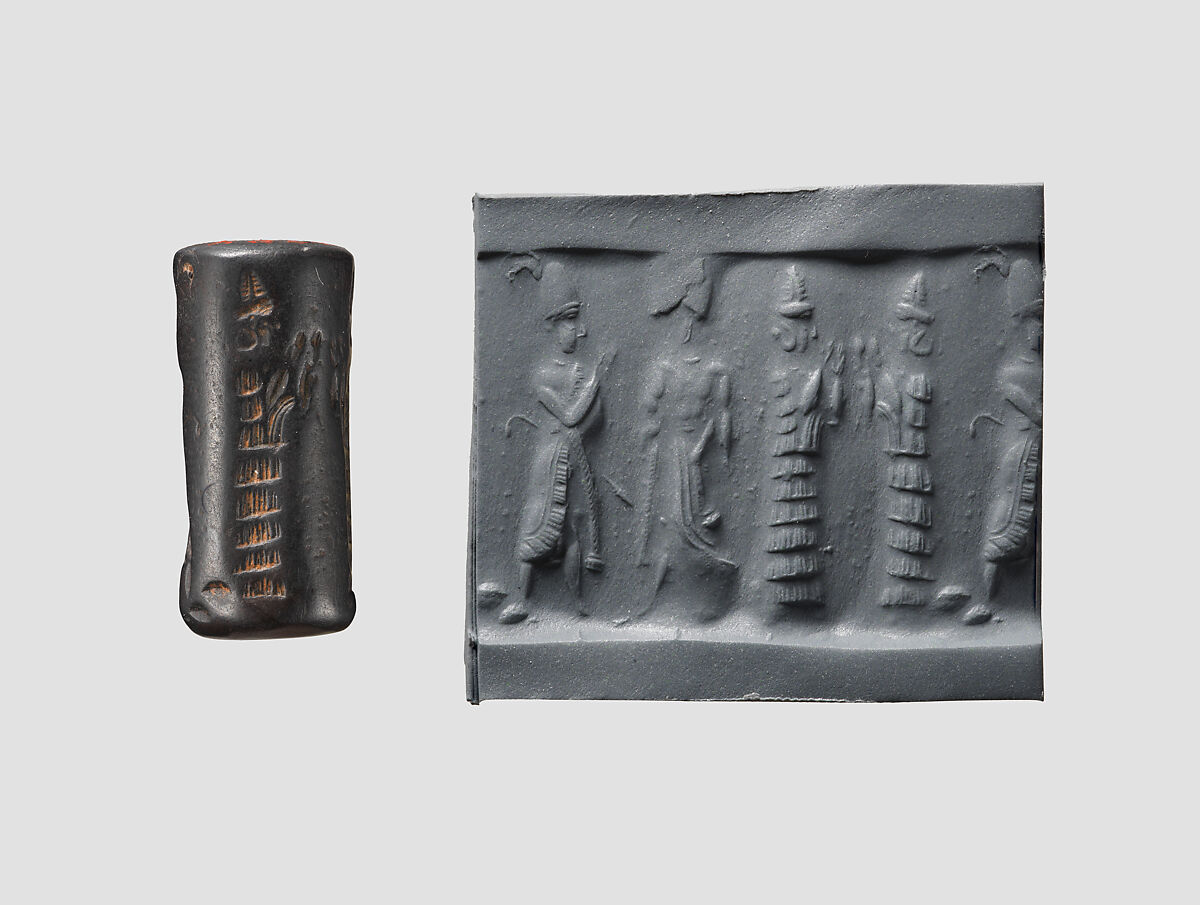 Cylinder seal and modern impression: suppliant goddesses and worshipers