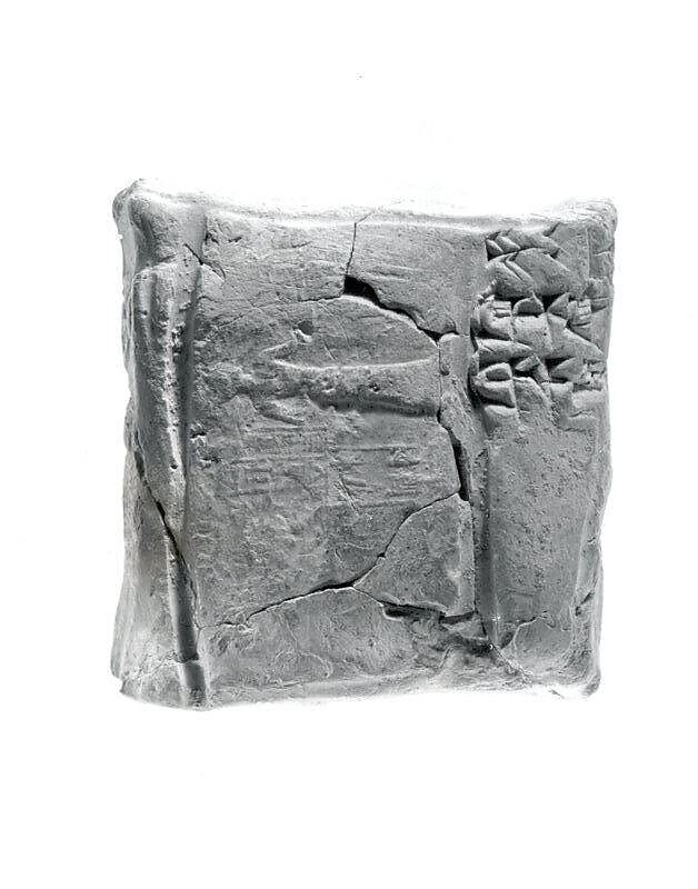 • Title: Cuneiform tablet case impressed with cylinder seal, for cuneiform tablet 11.217.7a: record of the account of Bamu