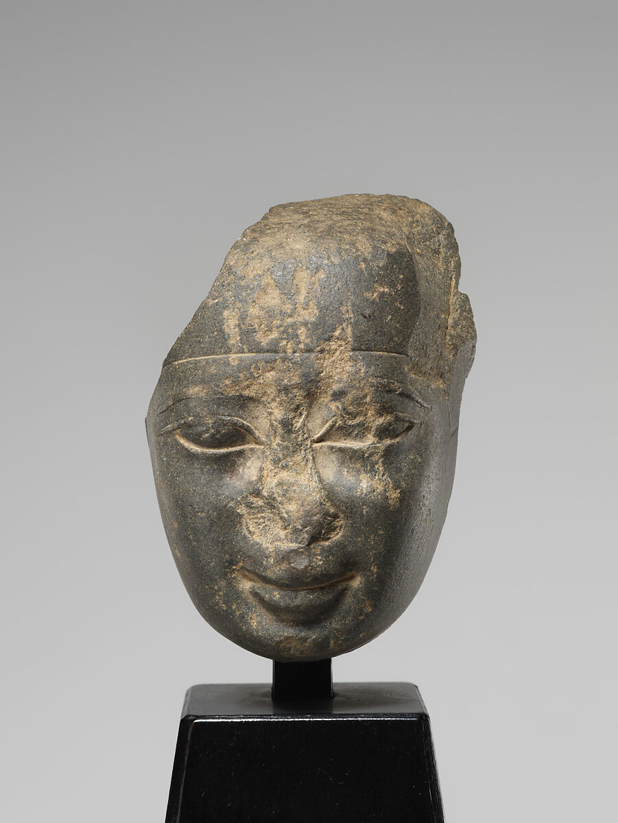 This elegant head represents a northern type of late Twenty-sixth Dynasty private sculpture. It originates from a modestly proportioned male figure.