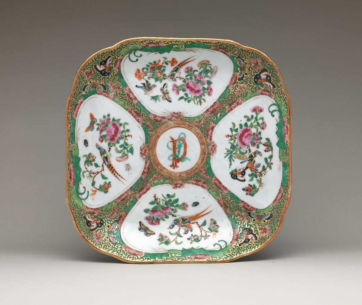 A Providence, Rhode Island merchant, Daniel Paine, ordered this dinner service for his wife, Louisa Paine, in the early nineteenth century. Her initials decorate the cups, saucers, dishes, plates, platters and tureens that compose the service.