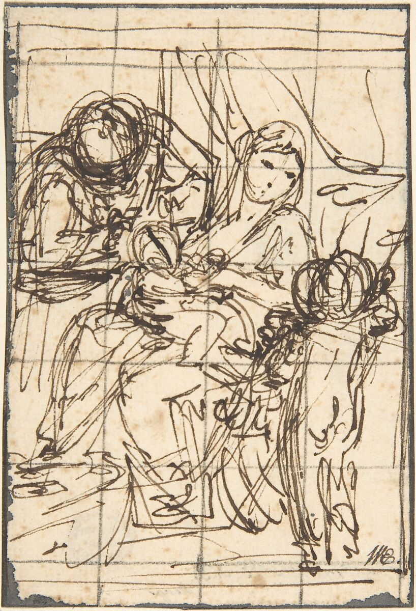 - Medium: Pen and brown ink, squared for transfer in black chalk