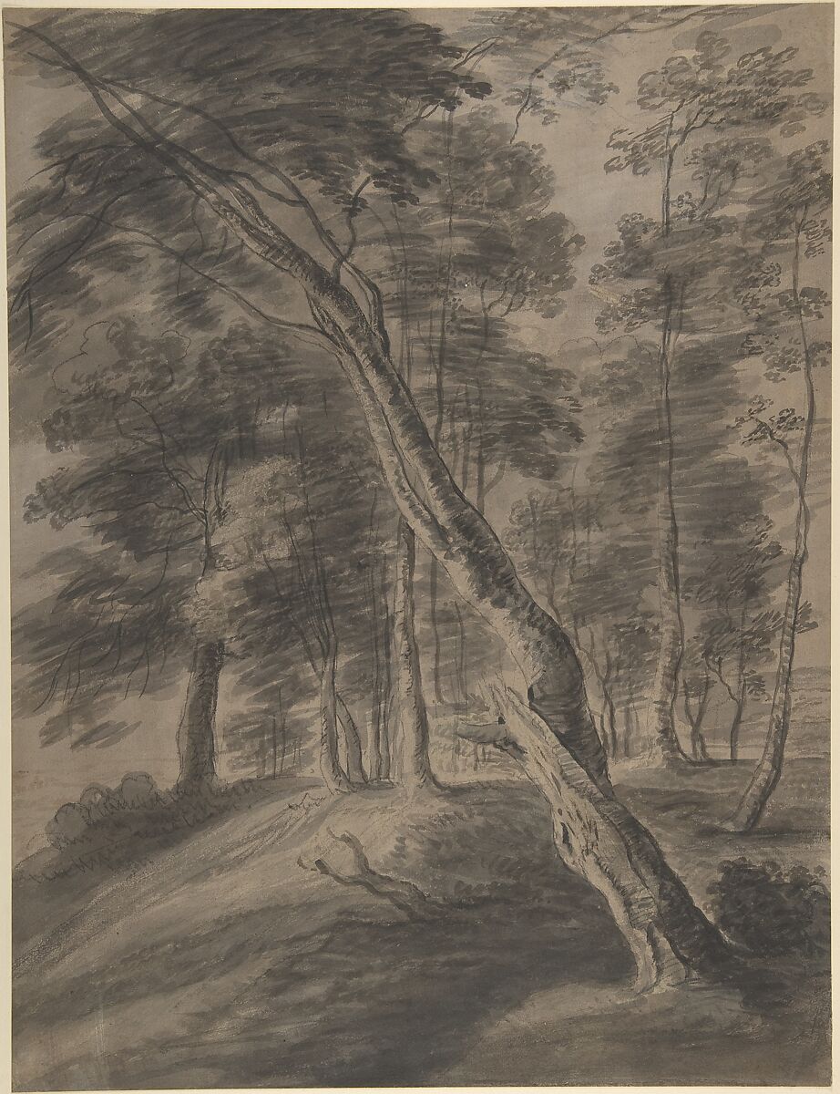 The identity of the artist responsible is not easily affirmed. When it first entered the Museum in 1975, the sheet was considered a work by the Flemish artist Jacques d’Arthois. D’Arthois belonged to the so-called Brussels school of landscapists, known for their rustic views of wooded landscapes, inspired by the nearby Sonian forest (Forêt de Soigne). Other members of this group were Lodewijk de Vadder (1605–1655) and Lucas Achtschellinck (1629–1699). These artists worked in close vicinity of one another, and their drawings and paintings show strong similarities, both in style and subject matter, which makes it difficult to define their respective oeuvres. It is not surprising therefore that in later years it has been suggested that this Forest Scene with a Tree in the Foreground possibly was made by Lodewijk de Vadder.