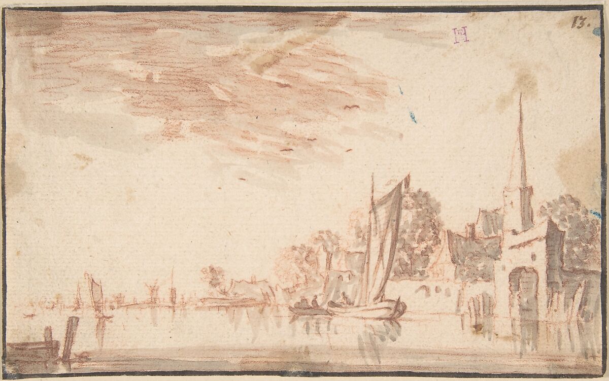 - Medium: Red chalk and gray wash, framing line in black ink.