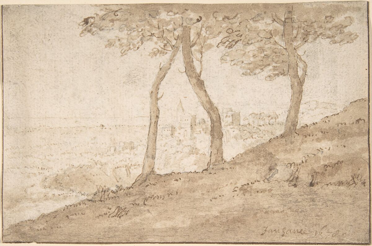 - Medium: Pen and brown ink, brush and brown wash over traces of black chalk; framing lines in pen and brown ink; verso: pen, brown ink and some brush and brown wash over black chalk