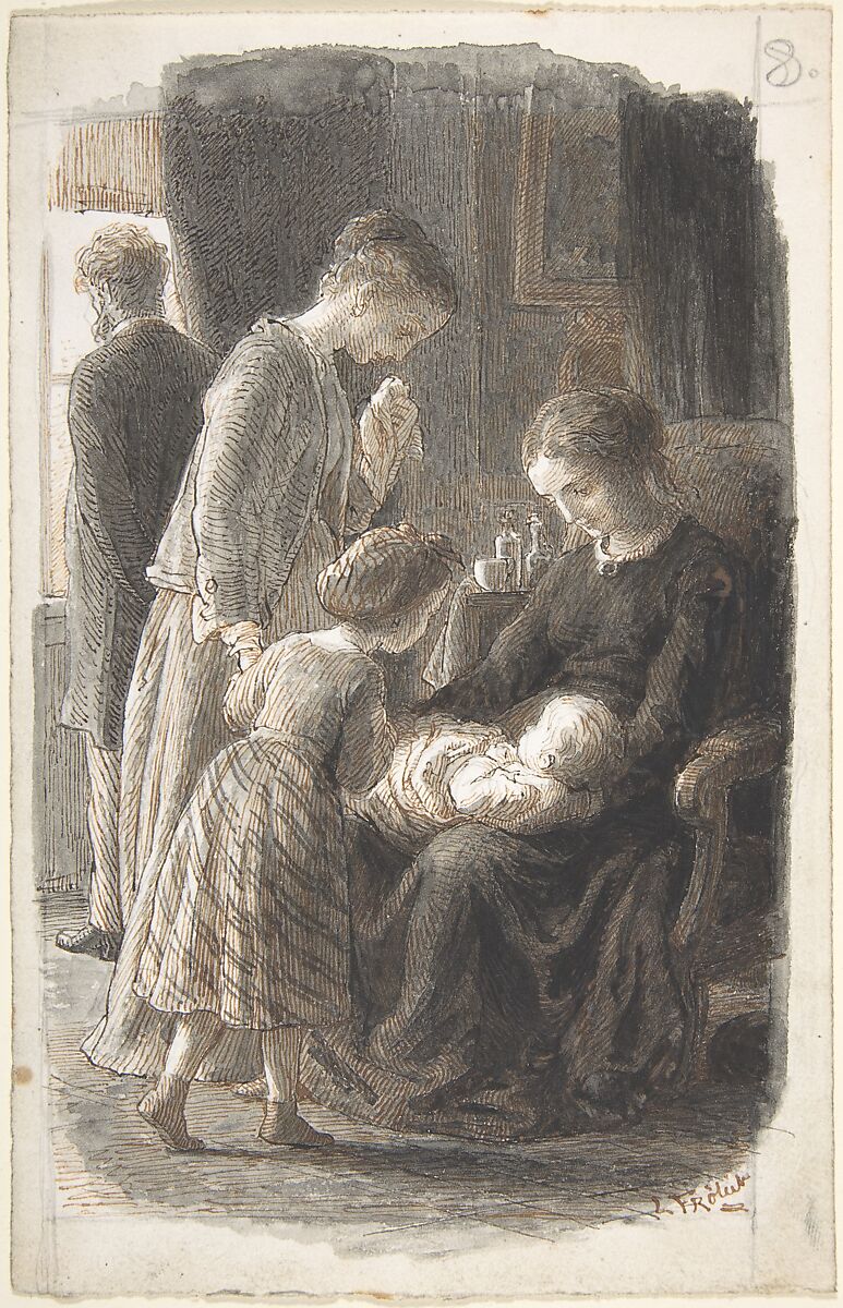 Frølich built an international career as an illustrator. With the publisher and author Pierre-Jules Hetzel, he produced a popular series of children’s books featuring the adventures of Mademoiselle Lili, based on his own daughter Edma. The artist first studied drawing under Martinus Rørbye, Christen Købke, and C. W. Eckersberg in Denmark before traveling extensively in Germany, Italy, and France, where he settled for an extended period, spending a year in the studio of Thomas Couture. While in London during the Franco-Prussian War, he contributed these illustrations to Eliza Tabor’s book "When I Was a Little Girl: Stories for Children," published by Macmillan in 1871. These were among the first Danish drawings to enter The Met collection.