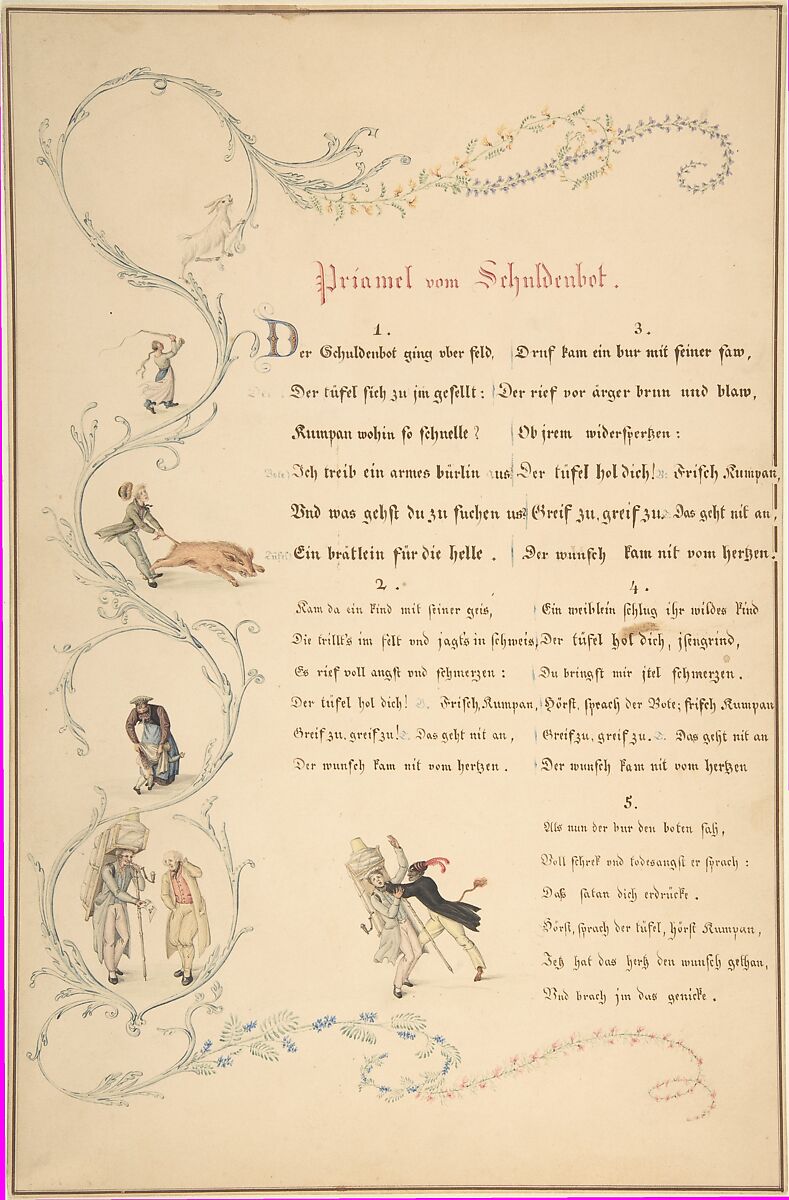 - Title: Sheets of Verses: Priamel vom Schuldenbot