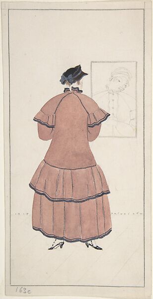 - Medium: Graphite, pen and black ink, watercolor; framing lines in graphite