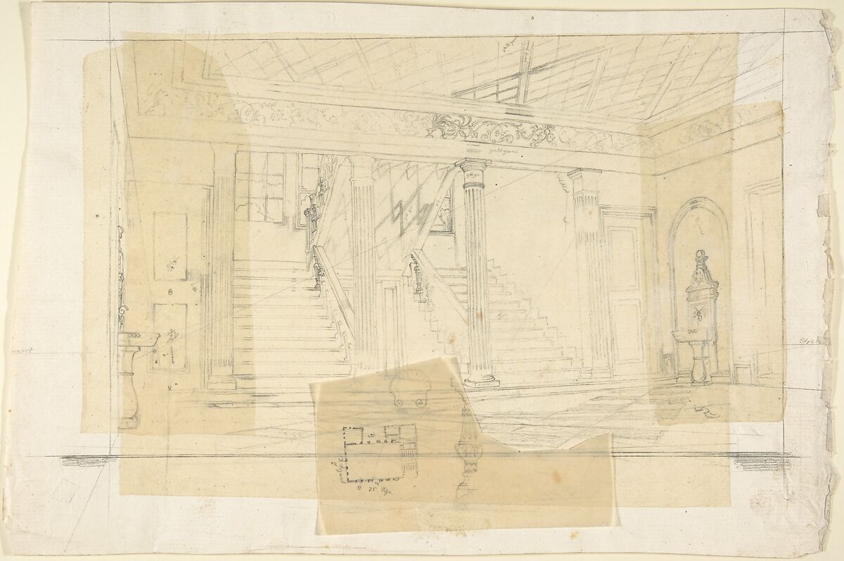 - Medium: Pencil on four sheets of tracing paper mounted onto laid paper.