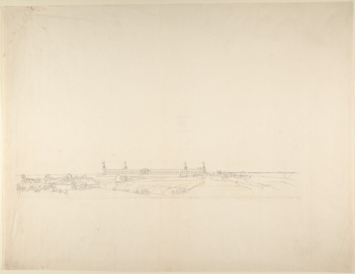 Von Hauslab is a little known figure in the history of art. A private tutor to the future Emperor Franz Joseph I, high-ranking military officer, and innovative cartographer, he traveled widely. It is his role as a map maker that helps to explain the meticulousness of this topographical drawing, although the building depicted remains unidentified. The minute precision of the graphite rendering contrasts with the loose and expressive treatment of the landscape and sky in a watercolor of the same subject (53.600.3678).