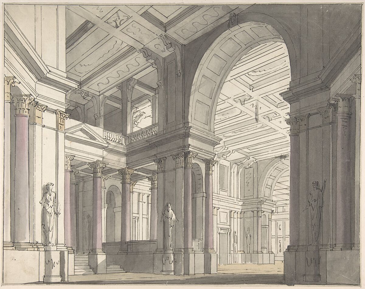 - Title: Design for a Stage set Showing the Interior of a Palace (recto); Architectural Sketch (verso)