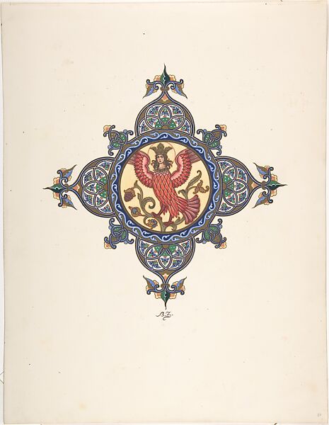 - Medium: Gouache, metallic inks, and black ink, heightened with white, over graphite