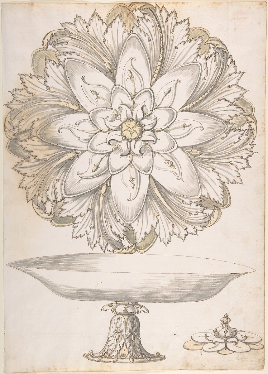 - Title: Design for Single Footed Dish with Cover Shaped like Flower and Foliage