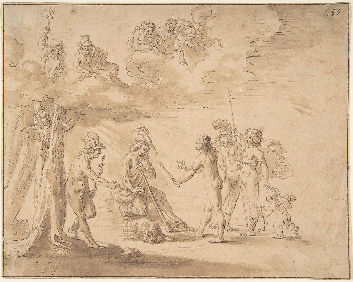 - Medium: Pen and brown ink, brush and brown wash.