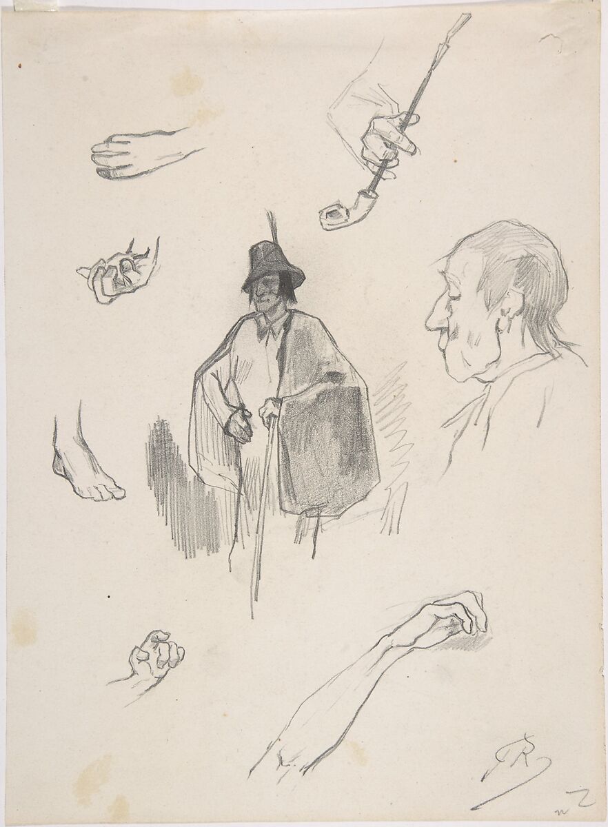 - Title: Sheet with figures, details of hands and feet