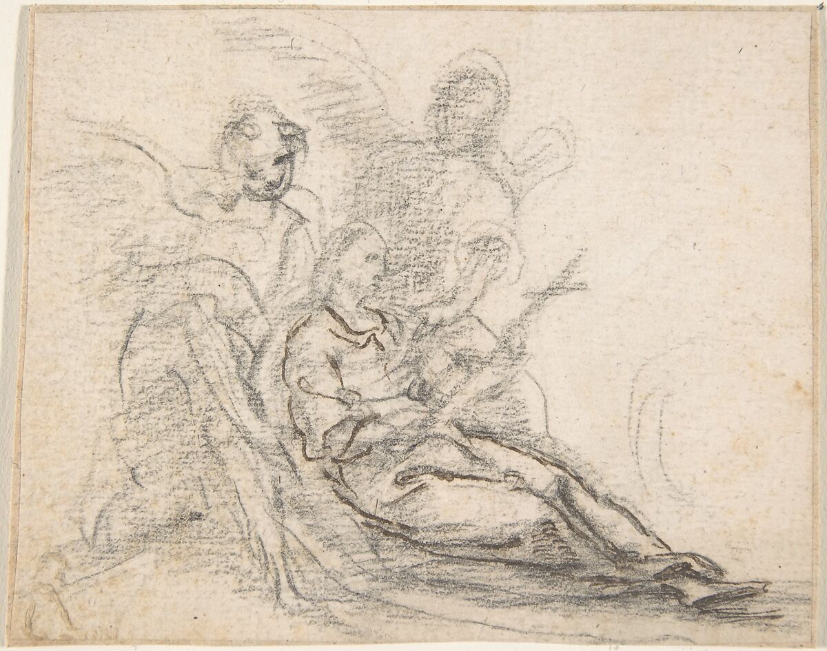 - Title: Reclining Figure of Saint Holding Cross, Supported by Two Angels (Death of the Magdalene?)