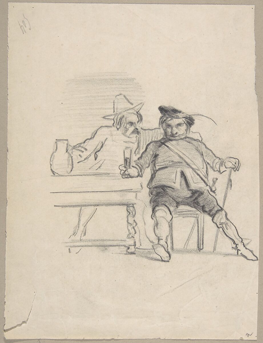 - Title: Two male figures seated at a table, drinking