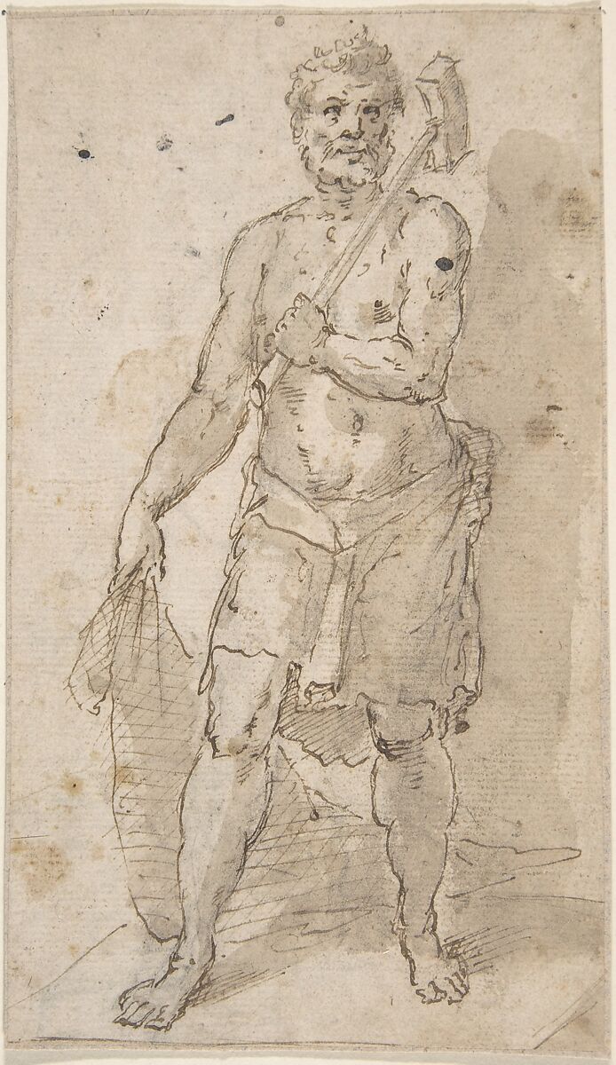 - Medium: Pen and dark brown ink with brush and wash over black chalk underdrawing. On off-white paper