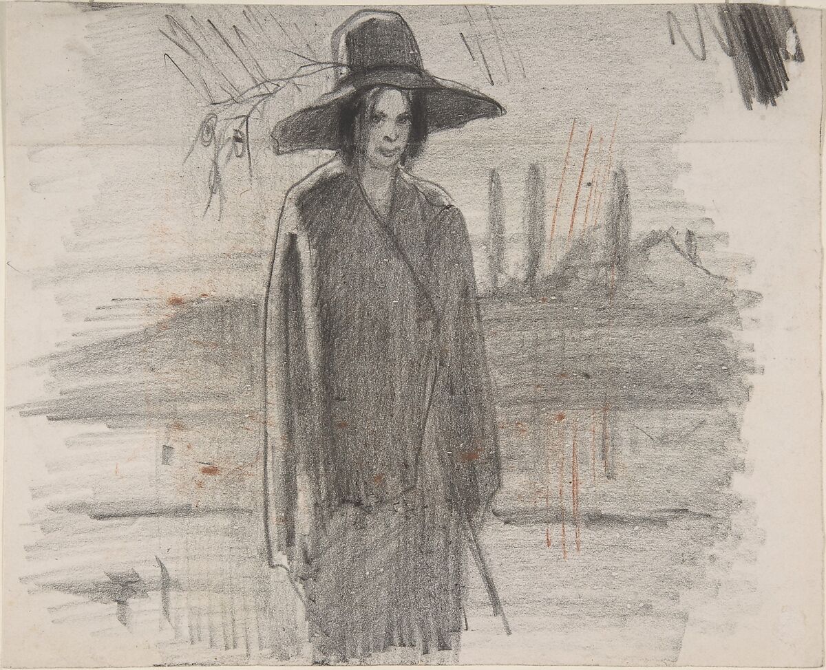 - Medium: Graphite, highlighted with red chalk