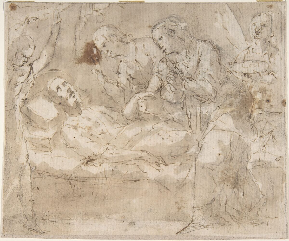 - Medium: Pen and brown ink with brush and brown wash over black chalk underdrawing. On off-white paper