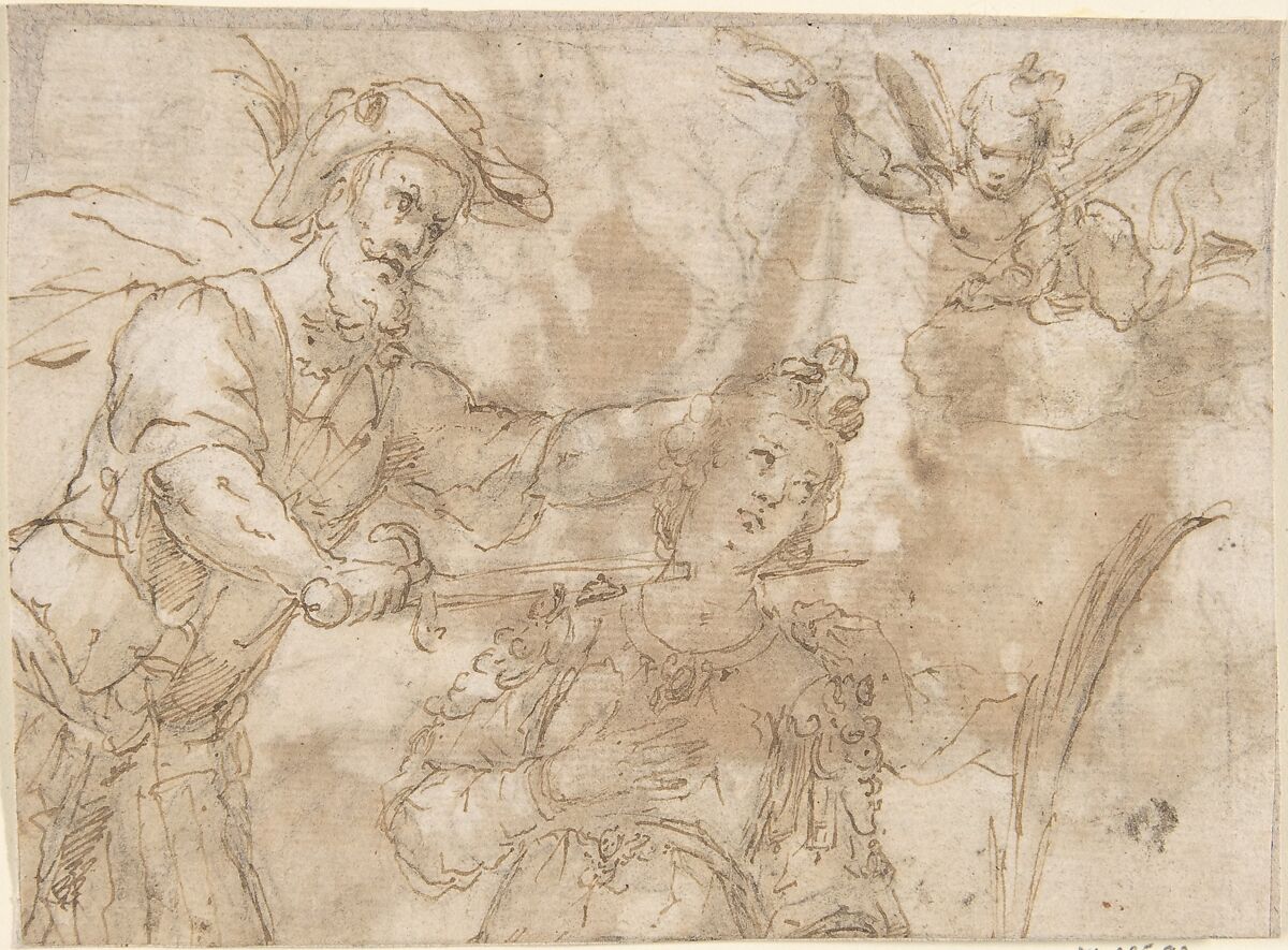 - Medium: Pen and brown ink with brush and brown wash over traces of black chalk underdrawing. On off-white paper