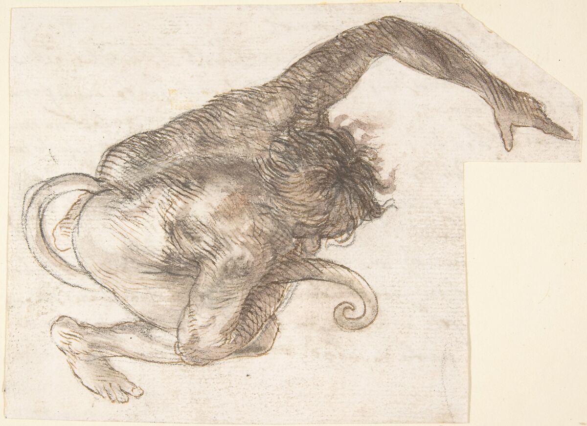 - Title: Figure of Fantastic Human-like Creature with Long Tail (recto); Fragment of a Letter or Document (verso)