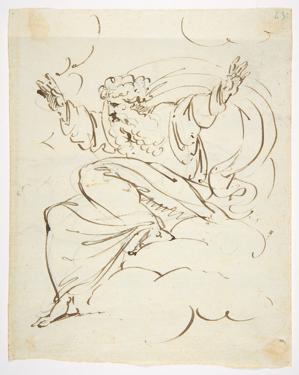 - Title: God The Father Creating (?) (recto); Study of neo-classical statue of a nude male (verso)