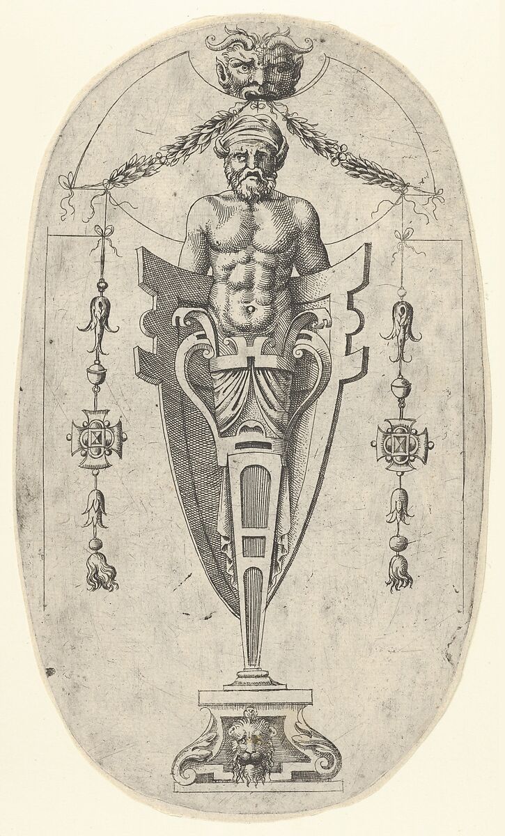 - Title: Male Terminal Figure; Torso with Beard and Turban on a Half-Length Pedestal Enclosed by a Shield