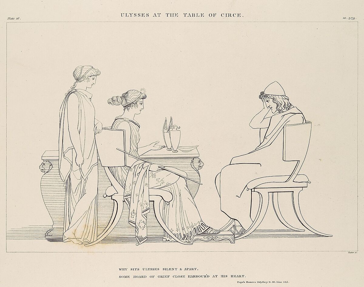 Before he arrived in Rome in 1787, Flaxman exhibited portraits and classical subjects in terracotta and plaster in London, and designed decorative reliefs for Josiah Wedgwood. During the seven years he spent in Italy, the sculptor developed a striking new style of outline drawing to illustrate famous poetic works by Homer and Aeschylus for private patrons, and the images were then engraved and published in Italy, France and Britain. Contemporaries saw these images as strikingly primitive, echoing the style of Greek vase painting, and well suited to archaic poetic subjects. Flaxman prefered to represent figures in profile, based furniture and costume on ancient sources, and used the open expanses of white paper to great psychological effect.