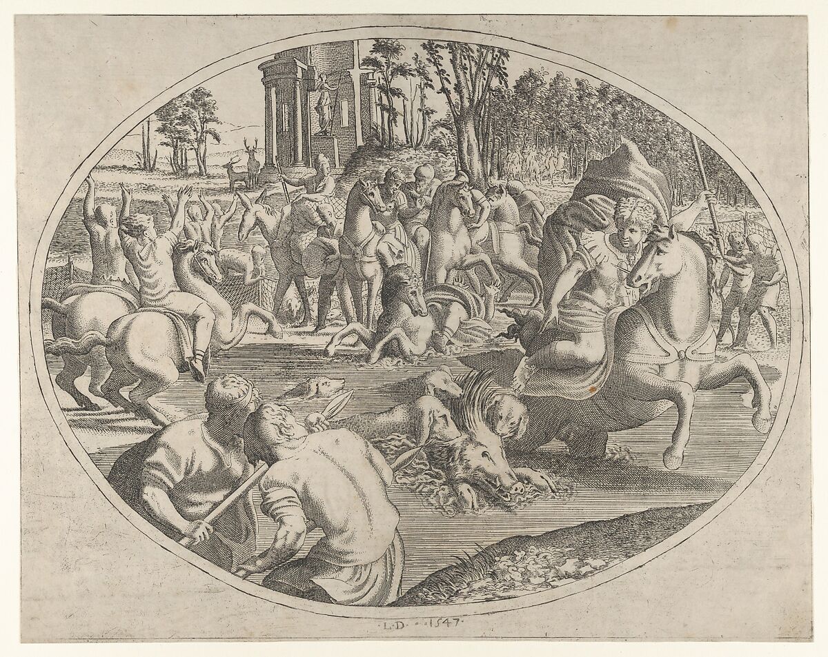 - Title: Young Man Hunting a Wild Boar, from "Three Prints on Hunting and Fishing"