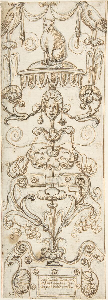 - Medium: Pen and brown ink over black chalk; ruled line along right border of sheet