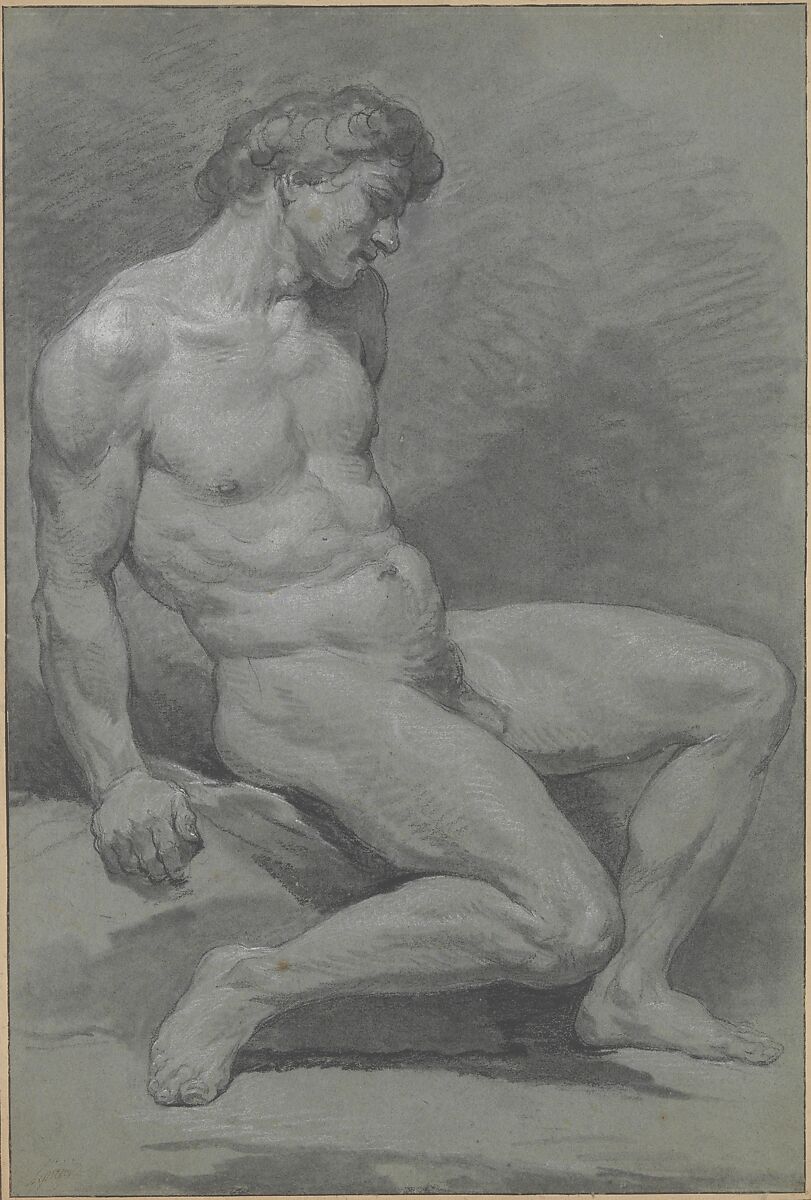 - Medium: Charcoal, stumped, black chalk heightened with white on gray-green paper