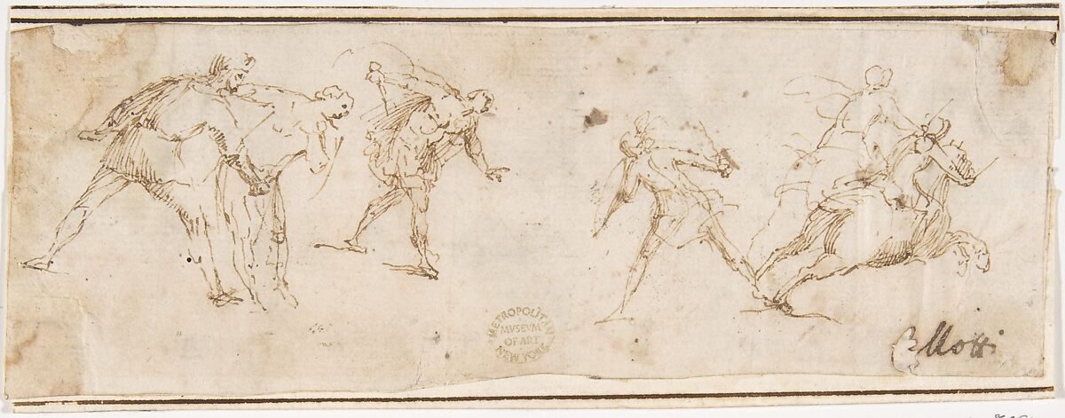 - Medium: Pen and brown ink. Framing lines in pen and brown ink on mount