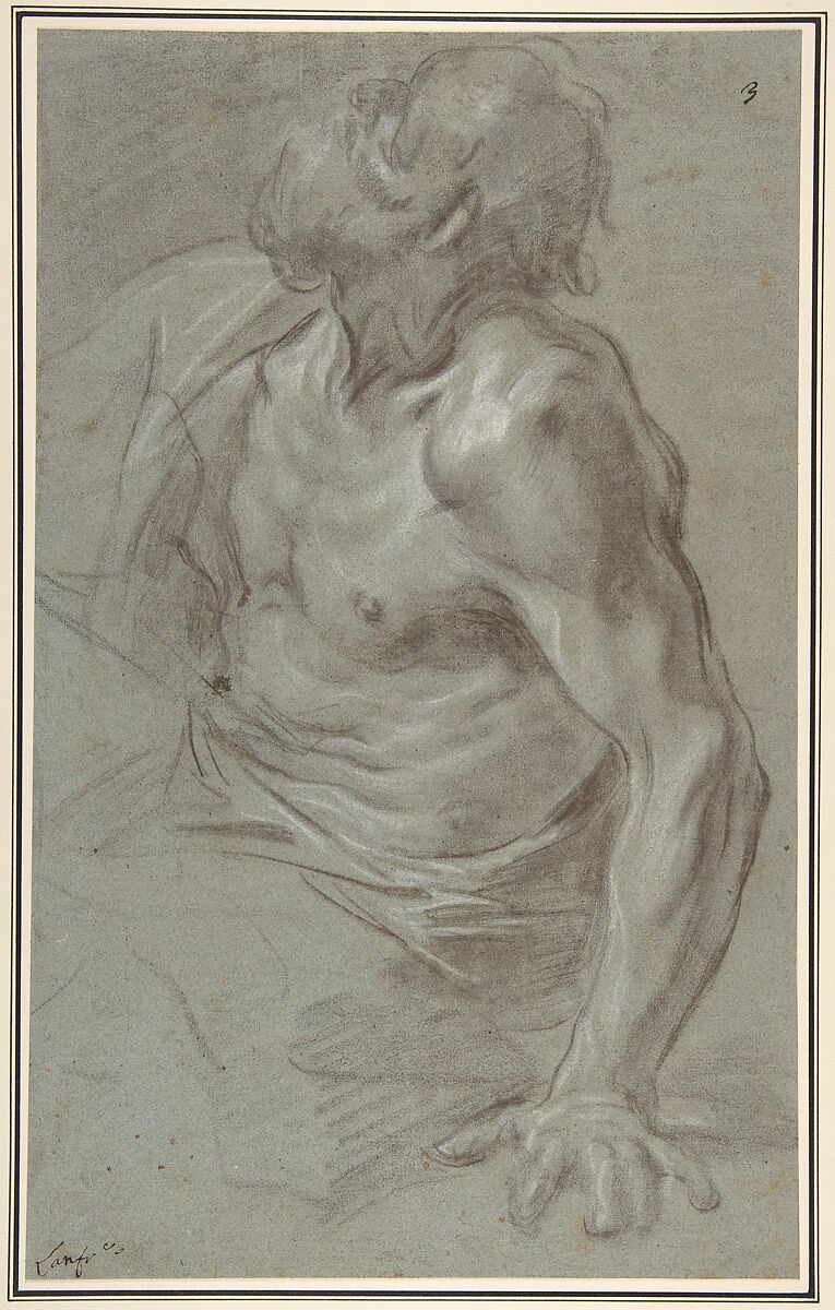 - Medium: Black and brown chalk, highlighted with white, on blue-gray paper