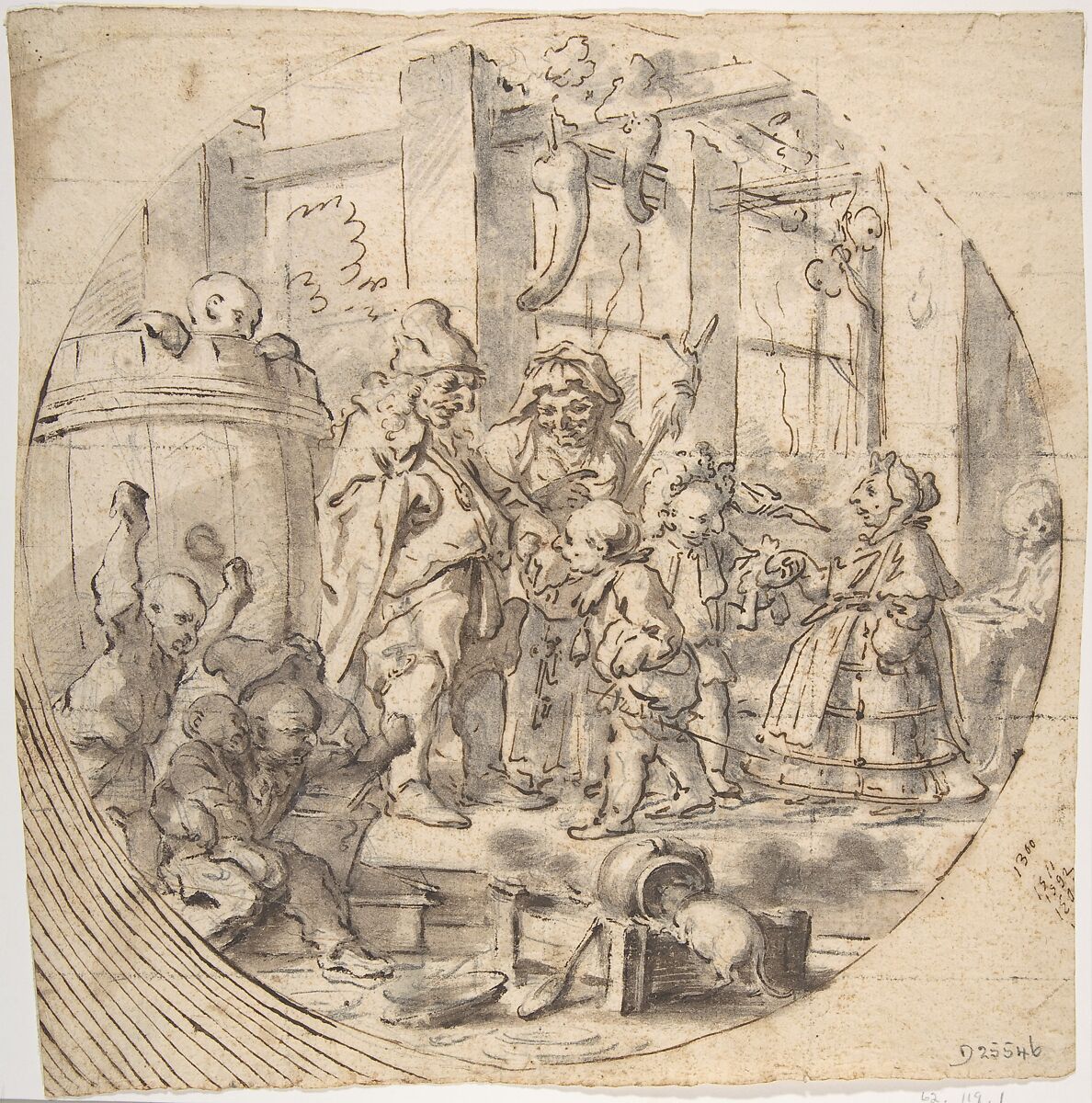 - Medium: Pen and brown ink, brush and brown and gray wash, over black chalk. Squared in black chalk