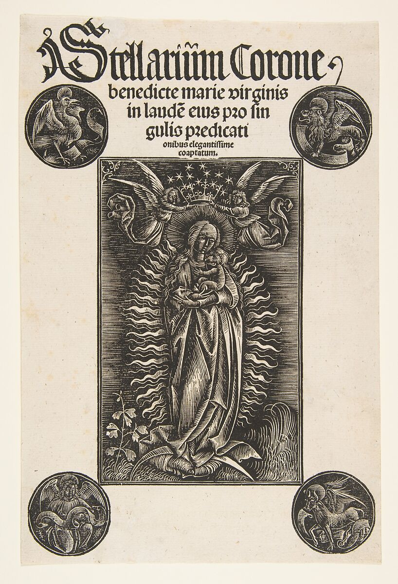 - Title: Virgin on a Crescent, title page from Pelbartus de Temesvar's "Stellarium corone"