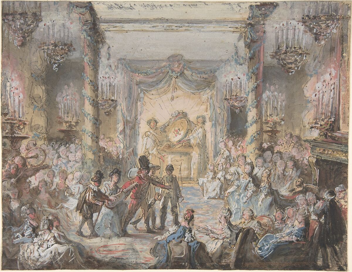 This drawing entered the museum in 1978 as a work by Gabriel de Saint-Aubin. Over the years scholars have expressed doubts about the attribution. It is now considered to be by an anonymous artist working in the style of Saint-Aubin.