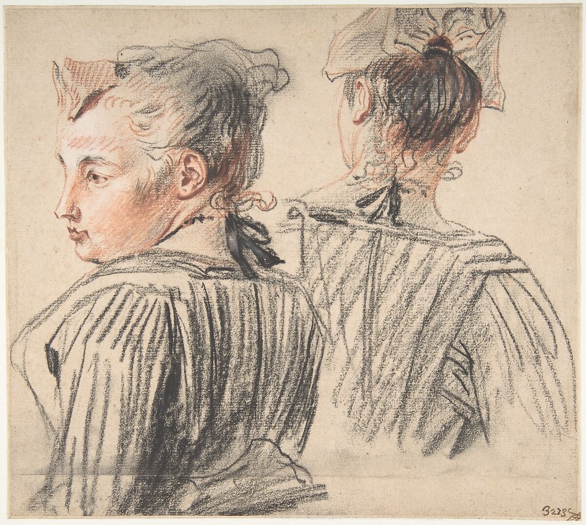 - Medium: Black and red chalk, heightened with a little white.