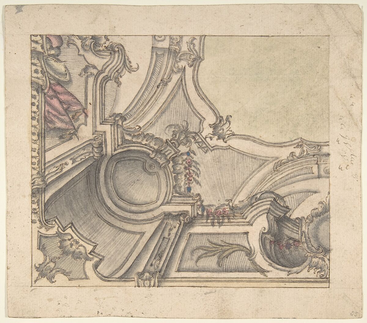 - Title: One Quarter of a Design for a Painted Ceiling (recto); Frieze with Putto, Vases, and Other Decorations (verso)