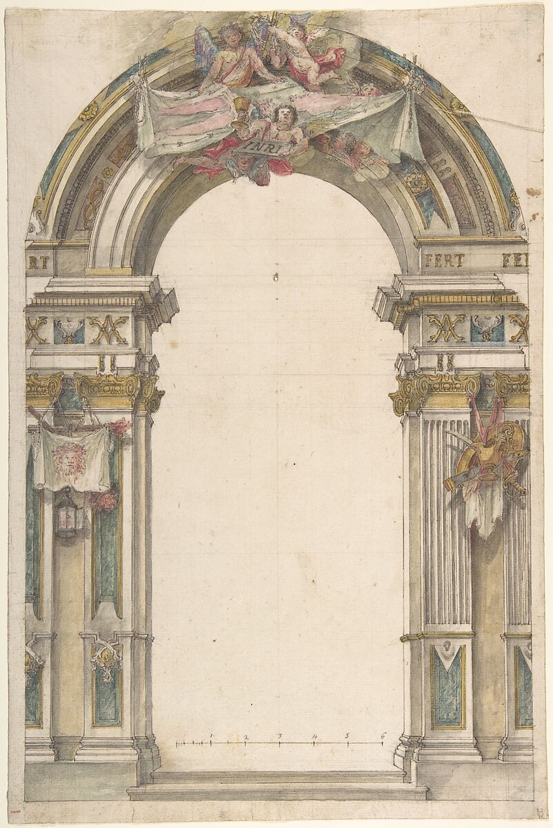 - Medium: Pen and gray ink, brush and watercolor, over leadpoint; scale at bottom in pen and gray ink