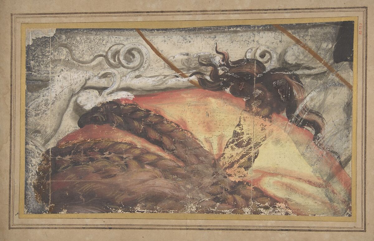 - Title: Tapestry Cartoon Fragment: The Top of Woman's Head with Hair Braided over a Cloth Headdress